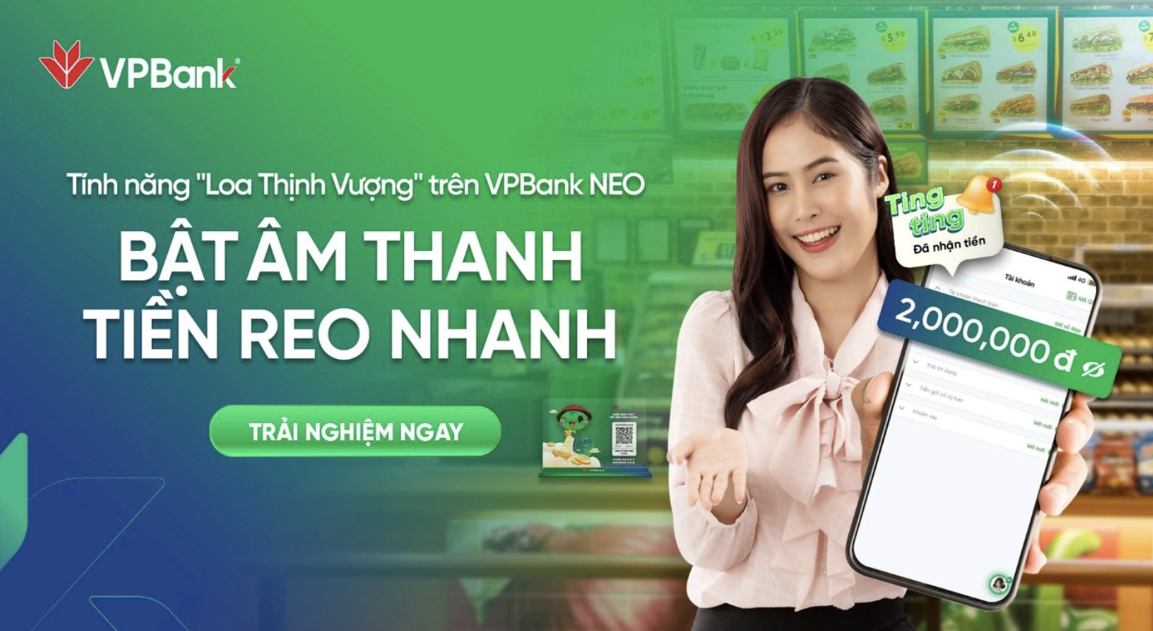 Với mục tiêu không ngừng mang đến dịch vụ tài chính vượt trội, VPBank đã triển khai tính năng thông báo biến động số dư bằng âm thanh thông qua ứng dụng ngân hàng số VPBa...