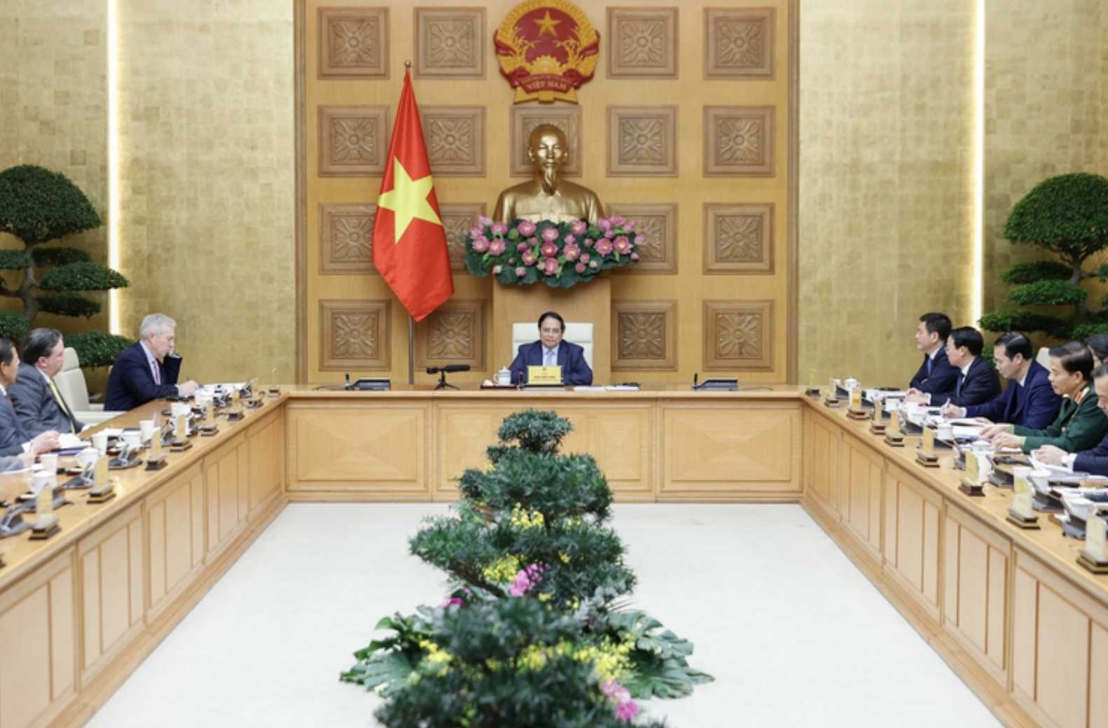 Chiều 18/3, Thủ tướng Phạm Minh Chính làm việc với Đoàn Hội đồng kinh doanh Hoa Kỳ - ASEAN (USABC) và khoảng 60 doanh nghiệp lớn của Hoa Kỳ đang thăm và làm việc tại Việt...