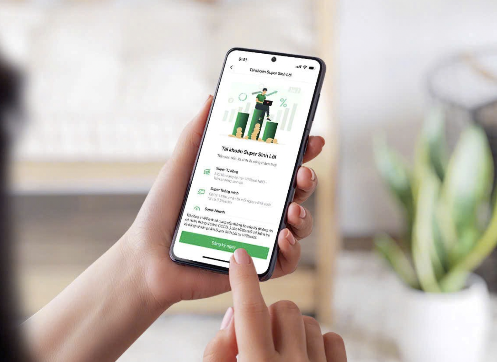 Với thao tác đơn giản, chỉ cần 1 phút đăng ký, tiền nhàn rỗi trong tài khoản của khách hàng sẽ tự động sinh lời theo ngày với mức lợi suất cố định 3,5%/năm trên bất kể kỳ...