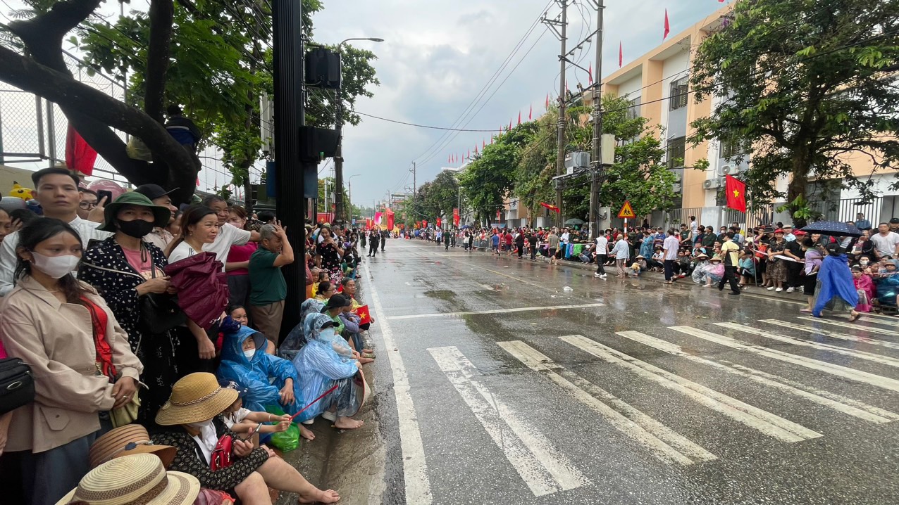 Sáng 7/5, hàng nghìn người dân đứng dưới mưa để chứng kiến lễ kỷ niệm 70 năm chiến thắng Điện Biên Phủ. Cơn mưa nặng hạt không làm ảnh hưởng nhuệ khí ngút trời của lực lư...